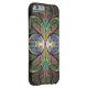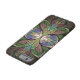 iPhone 6/6S case design from "Duchess of Sauchiehall," an Apophysis fractal by Susan Wallace. Copyright © 2013, Susan Wallace. Abstract stained glass floral Art Nouveau style hourglass in shades of green, bright rosy pink and purple with chocolate brown and blue highlights.