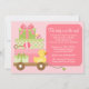 This cute Baby Shower invitation features pink and green baby gifts and a rubber ducky in a wagon. This modern and fun baby shower invitation is perfect for any mom to be.
