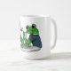 A cartoon-style mug, with a frog and a comic duck doing a tug-of-war while eating spaghetti ! 🍝