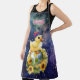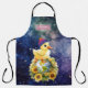 Apron with an illustration of a cute duck in a beanie in the colours of the bisexual flag stands on the planet!