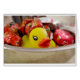 The adorable duck is popping out of this bowl of candy.