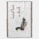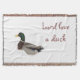 Easily customize or remove the text on this decorative throw blanket which features a mallard duck, very surprised to find himself surrounded by fluffy white snow from an early storm. His lovely green iridescent neck, yellow beak and intricately patterned wings really stand out against all that white! The text reads: Lord love a duck. What a funny bird he is!