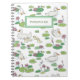Make your notebook extra special with this hand-drawn illustrated ducks with pink lily pads design notebook with a white background.