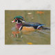 DUCK SWIMMING IN LAKE. BEAUTIFUL WOOD DUCK GIFT POSTCARD