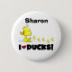 A cute duck design on I Love Ducks button with an area you can easily customize with a name!