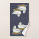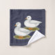 It was advertised as NAVY blue and the color sent was greenish blue. I am disappointed in this product. Quality and printing are great as are all my other orders. As you can see in picture the tea towel on right is perfect, hand towel not so much! Print was awesome and just as ordered