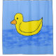 This blue shower curtain with a yellow ducky has a cute design popcorn anime style! Popcorn Anime - designs for smiles and laughter. For more fun, visit: www.popcornanime.com.