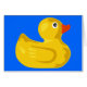 Simple graphic illustration of a cute cartoon yellow duck in blue water note card. This duck is Image available on various gifts and products. Customize and choose your own duck background colour or add text if you need to.