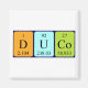Duco spelled out as D U Co (Deuterium Uranium Cobalt) on a magnet for the scientist in you.