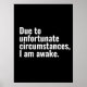 Due to unfortunate circumstances, I am awake text Poster