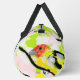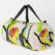 I actually had been searching other sites for a duffle gym bag and I couldn't find any. This one is just what I was looking for with all the features. The inside zip pocket, the outside mesh pocket and LOTS of room inside. Love the printing. Really like how the floral print turned out.