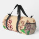 I actually had been searching other sites for a duffle gym bag and I couldn't find any. This one is just what I was looking for with all the features. The inside zip pocket, the outside mesh pocket and LOTS of room inside. Love the printing. Really like how the floral print turned out.