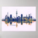 Dark Blue Skyline of Duisburg, a city in western Germany, at the junction of the Rhine and Ruhr rivers