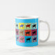 This fun mug features a colourful pattern of the silhouette of the famous Duke of Wellington statue outside GOMA Gallery of Modern Art in the city centre of Glasgow, Scotland. The Duke sits astride his trusty horse and wears his trademark traffic cone on his head. Each silhouette is inside a coloured square box shape. Colours include blue, red, green, blue, orange and yellow. You can change the bright blue background colour to suit with the customize button. The duke is rarely seen without the cone on his head. Glaswegians revellers and pranksters make sure of that, much to the horror of the City fathers. The mug would be the perfect gift for friends and family with Glaswegian roots, and anyone who loves the great city of Glasgow.