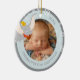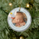 This is a precious, rounded Christmas ornament, the perfect way to commemorate a baby's first magical holiday season. The ornament beautifully showcases a sweet, personalized baby photo at its heart, framed by a soft gray border decorated with delicate snowflakes. The design is charmingly accented with Disney's Dumbo the flying elephant, a beloved classic character. The edge is inscribed with personalized text celebrating the baby's 1st Christmas and the specific year. This stunning piece is a delightful, lasting keepsake to mark this special milestone!