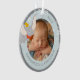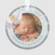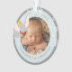This is a precious, rounded Christmas ornament, the perfect way to commemorate a baby's first magical holiday season. The ornament beautifully showcases a sweet, personalized baby photo at its heart, framed by a soft gray border decorated with delicate snowflakes. The design is charmingly accented with Disney's Dumbo the flying elephant, a beloved classic character. The edge is inscribed with personalized text celebrating the baby's 1st Christmas and the specific year. This stunning piece is a delightful, lasting keepsake to mark this special milestone!