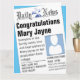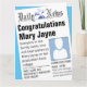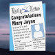 For a newly graduated student. Graduation card. A Giant Newspaper format announces a graduation. Make this dummy newspaper extra personal by including the name of the recipient, as well as newspaper wording, and inside message. Female student graduation.