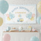 Celebrate your little one’s first birthday with this dump truck birthday banner! Featuring a cute truck carrying gifts and balloons with a soft baby blue gingham pattern (checkered) and dotted borders, it’s perfect for a boy’s first birthday party. Fully customizable with name and age, this banner adds a festive and coordinated touch to your celebration.