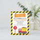 A construction theme birthday party offers lots of fun for birthday boys who love construction toys and machines because there are so many party ideas to work with on this theme! Choose this invite who makes use of lots of construction theme elements like a cute red and yellow dump truck, a yellow and black slanted stripes pattern, construction signs and cone. Children guests are going to be so happy and excited to receive this invitation!