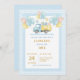 Celebrate your little one’s first birthday with this sweet dump truck invitation! Featuring a cute truck carrying gifts and balloons with soft baby blue gingham pattern and dotted borders, this design is perfect for a boys’ first birthday party. Fully customizable with name, date, time, and details for a simple and charming celebration.