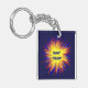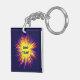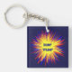 An acrylic keychain which features a political starburst abstract pattern in red, yellow and blue with the words Dump Trump in the centre. Text can be customized.