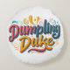 A whimsical and playful design featuring the text "Dumpling Duke" in a hand-drawn, colourful cartoonist font with swirling flourishes. The vibrant colours and playful typography create a sense of fun and excitement.