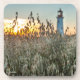 Sous-verre, photo d'un phare dans un champs au coucher de soleil. Titre: « L'ance à la cabane 2 », Îles-de-la-Madeleine, Québec, Canada, Marie-Ève LaBadie