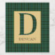 Handsome design celebrating your Scottish heritage, features monogram letter D in Clan Duncan tartan plaid with matching border and customizable text