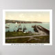 Vintage Ireland, late 19th century photochrom print view of Dunmore harbour & lighthouse, County Waterford.