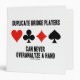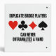 When you play duplicate bridge, do you frequently go over hands after the session? Showcase your wry duplicate bridge attitude with this binder featuring the four card suits along with the saying "Duplicate Bridge Players Can Never Overanalyze A Hand". Make others do a double-take with a sharp observation of what some of the most astute bridge players do after playing bridge with this memorable bridge binder!