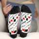 No need to be a Lifemaster to enjoy this duplicate bridge humour pair of crew socks featuring the four card suits (heart, club, diamond, spade) and the duplicate bridge truism "Duplicate Bridge Takes A Lifetime To Master". Make everyone do a double-take on exactly what this saying means the next time you play bridge wearing this pair of crew socks!