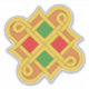This knotwork design illustration is based on interlace designs seen in the 7th century Insular (aka Hiberno-Saxon) illuminated manuscript known as the Book of Durrow. Here the centre diamonds are in Christmas red and green.