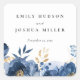 Dusky Blue Gold Floral Wedding Square Sticker