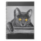 A photograph looking straight in the face of a grey cat with golden glowing eyes. Edited with selective colouring to emphasize the mesmerizing eyes.