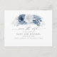 Dusty and Navy Blue Floral Boho Save the Date Postcard