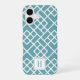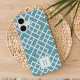 Dusty Aqua Bamboo Lattice Pattern Monogram iPhone 16 Case