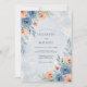 This serene watercolor design features a palette of dusty blue and soft peach. Lush navy roses and delicate apricot poppies are accented by sage green eucalyptus leaves. The airy light blue backdrop enhances the romantic botanical feel of the artwork. It showcases a hand-painted floral aesthetic that is both timeless and elegant.