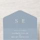 This chic minimalist all-in-one wedding invitation can be personalized with your monogram initials and wedding day information on a dusty blue background. The invitation includes a perforated RSVP with your wedding website QR code and details. Designed by Thisisnotme©