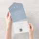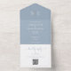Dusty Blue And Gold Monogram QR Code Wedding All In One Invitation