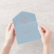 A dust blue and peach all-in-one wedding invitation exudes elegance, sophistication, and a touch of natural beauty, offering a seamless and convenient way to share your special day with loved ones.