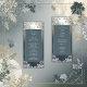 Immerse yourself in the enchantment of our event with our exquisite menu and program card, seamlessly blending art deco ornate frames and serene dusty blue and white tones. Designed with simple elegance and modern classic sophistication, this card offers a formal and classy guide to the festivities. Explore the vintage ornate frame details as you peruse the menu offerings, each dish curated to delight your palate. Then, immerse yourself in the program, where playful romanticism inspired by generative content infuses every moment with whimsical charm.