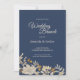 Cette invitation à brunch mariage Boho d'automne Dusty Blue combine une ambiance antique avec un look fleur sauvage bohème rétro. Les élégants fleurs sauvages beiges neutres, en plus de l'arrière - plan bleu poussiéreux, marine, avec sa typographie calligraphique classe, permettent un thème formel mais sauvage et fleuri, style vintage de célébration du mariage.