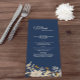 Ce menu Boho d'automne Dusty Blue associe une ambiance ancienne à un style fleur sauvage rétro et bohème. Les élégants fleurs sauvages beiges neutres, en plus de l'arrière - plan bleu poussiéreux, marine, avec sa typographie calligraphique classe, permettent un thème formel mais sauvage et fleuri, style vintage de célébration du mariage.