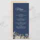 This Dusty Blue Autumn Boho wedding menu combines an antique vibe with a retro bohemian wildflower look. The elegant, neutral beige wildflowers on top of the dusty blue, navy background, with its classy calligraphy typography, allows for a formal but wild and floral, vintage style marriage celebration theme.