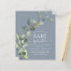 Budget Dusty Blue Eucalyptus Greenery Succulent Botanical Watercolor Spring Gender Neutral Baby Boy or Baby Girl Baby Sprinkle Shower Invitations on white background - includes beautiful and elegant script typography with modern botanical leaves and greenery for the special Mother to Be celebration.