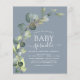 Budget Dusty Blue Eucalyptus Greenery Succulent Botanical Watercolor Spring Gender Neutral Baby Boy or Baby Girl Baby Sprinkle Shower Invitations on white background - includes beautiful and elegant script typography with modern botanical leaves and greenery for the special Mother to Be celebration.