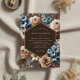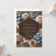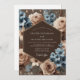 A romantic arrangement of soft blush roses and delicate blue blooms creates a moody and ethereal atmosphere. This design evokes a sense of sophisticated charm with its rich, muted color palette. It features roses and blue hydrangeas.