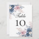 Dusty Blue and Blush pink floral on these pretty Wedding table number cards. See our collection of matching products