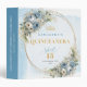 Celebra un momento inolvidable con este álbum de recuerdos personalizado para Quinceañera / 15 años, diseñado en un delicado estilo boho o bohemio. La combinación de tonos azul polvo, azul pastel y azul claro, junto con flores suaves, eucalipto y follaje verde, crea una estética elegante y moderna, realzada con detalles en dorado que aportan un toque de lujo y distinción.