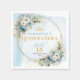 Elevate your Quinceañera celebration with these elegant paper napkins, beautifully designed with watercolor dusty blue flowers, soft eucalyptus greenery, and a shimmering gold glitter frame. The delicate floral arrangements in boho, bohemian, or watercolor styles paired with elegant script lettering create a refined, sophisticated look that perfectly complements any pastel or dusty blue themed party.